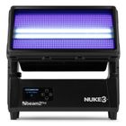 The Nuke3 Motorized Strobe/Wash is a dynamic lighting powerhouse designed for versatility and impact. With a motorized 180° tilt range, this hybrid fixture switches seamlessly between a powerful strobe and a colourful wash, or a captivating combination of both effects. Featuring 96x 10W Cool White LEDs and 864x 0.5W RGB SMD LEDs, the Nuke3 provides a brilliant palette of colours and intense white light. Pixel-mappable zones, electronic frost filter, DMX control, and automated programs make creating stunning lighting effects a breeze. Its IP65 waterproof rating ensures reliable outdoor performance, making the Nuke3 an ideal choice for both indoor and outdoor events.